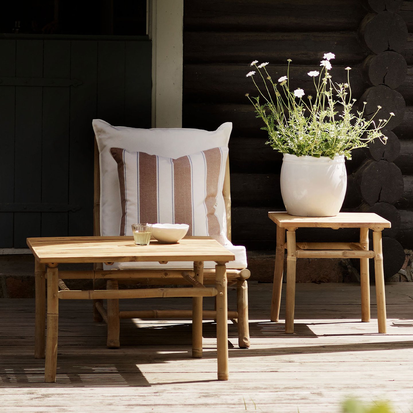Bambus wird seit vielen Jahren für Möbeldesign verwendet. Um die schönsten Details hervorzuheben, werden alle unsere Bambusmöbel in Handarbeit gefertigt. Wir behandeln sie mit einem natürlichen Holzöl auf Wasserbasis, wodurch der Bambus widerstandsfähiger gegen Wind und Witterungseinflüsse wird.