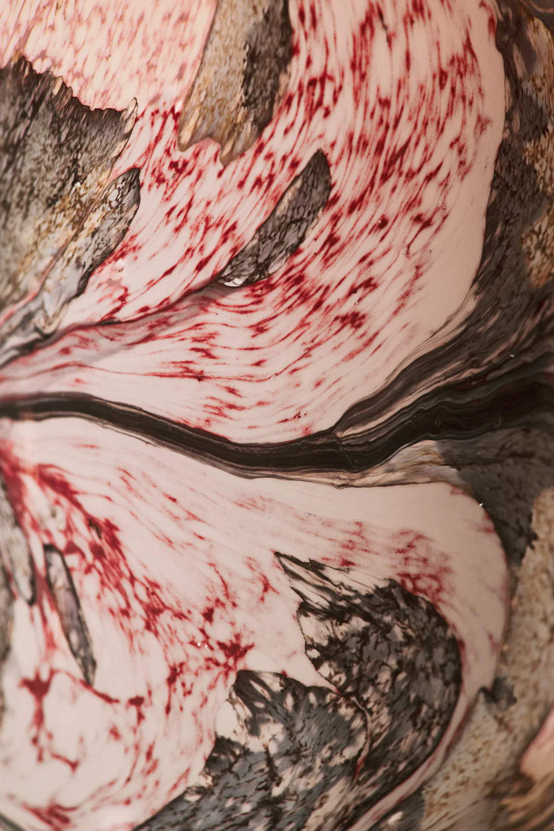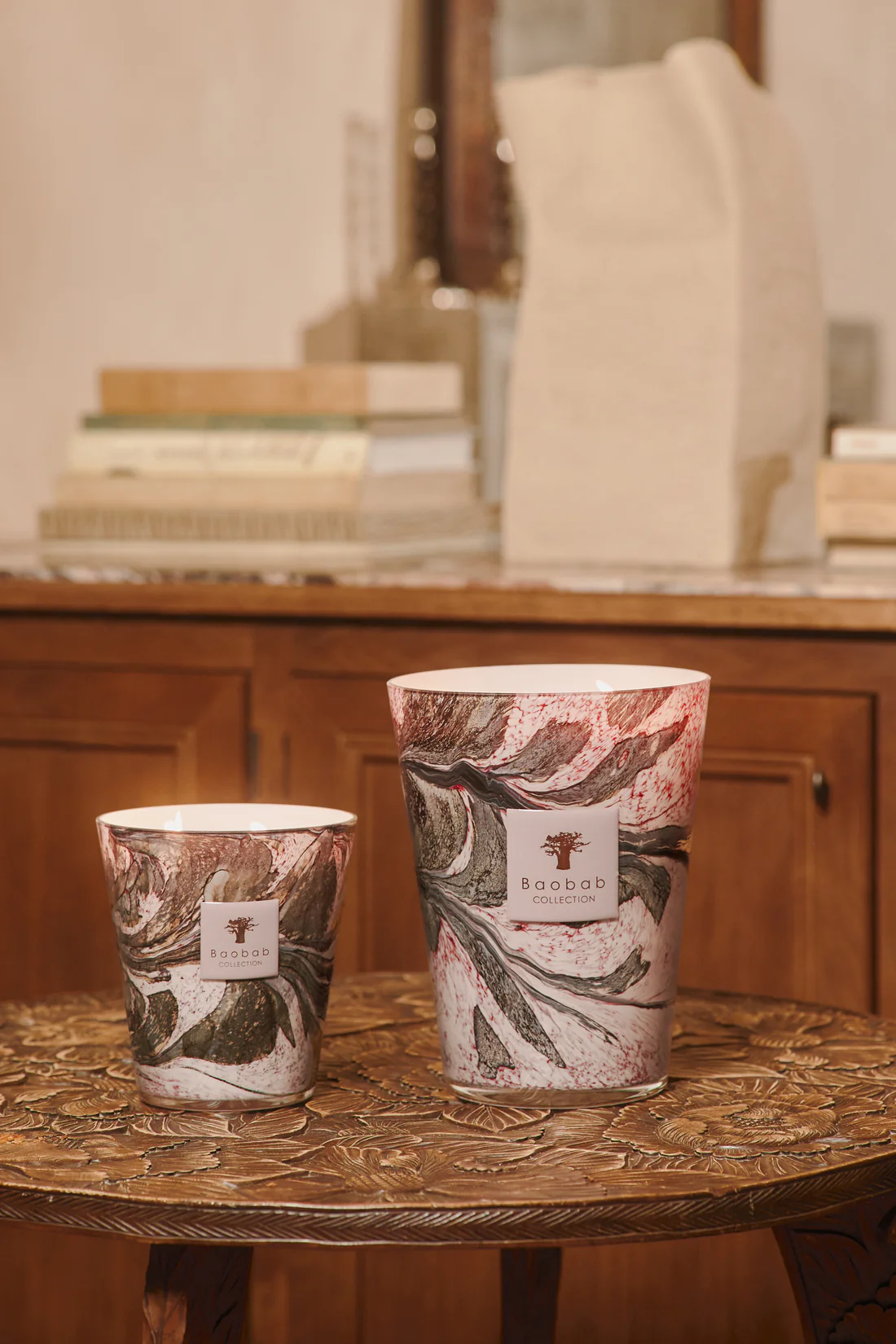 Die Duftkerze Manon präsentiert sich in handgeblasenem Glas mit Farbtönen in Himbeer und Graublau und enthüllt zarte Marmorierungen, die wie schwebende Blätter auf ihrer Oberfläche schwimmen. Jedes Stück trägt mit impressionistischer Zartheit die Handschrift des Handwerkers. Cassis gibt in dieser Komposition aus Zitrusfrüchten mit fruchtiger Modernität und strahlender Energie den Ton an. Die zarte Rose verleiht der Herznote eine samtige Eleganz, während die einhüllende Wärme von Sandelholz eine sanfte und anhaltende Duftspur hinterlässt. Ein leuchtender und luftiger Duft, der die heitersten und femininsten Facetten der Natur einfängt.