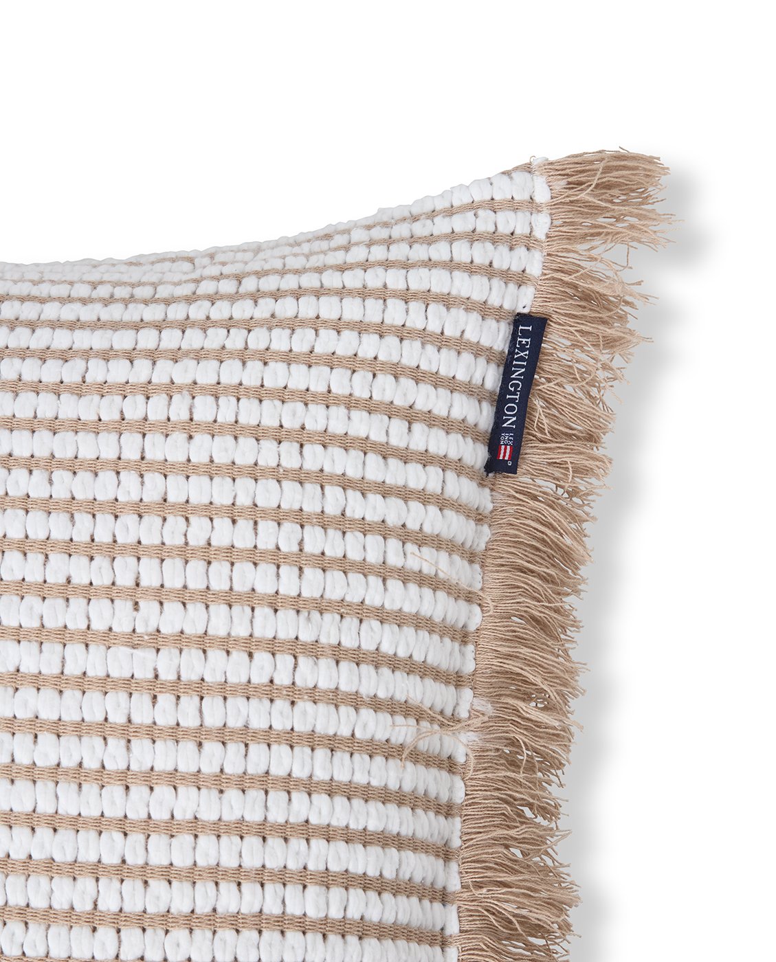 Aus schwerer, hochwertiger Bio-Baumwolle gefertigt, verleiht dieser gestreifte Kissenbezug jedem Raum entspannte Textur und zeitlose Eleganz. Die garngefärbten Streifen sorgen für Tiefe und definierte Konturen, während die feinen Fransen aus Eigenstoff und der verdeckte, farblich abgestimmte Reißverschluss einen sauberen, edlen Abschluss schaffen. Abgerundet wird das Design durch das gewebte Lexington-Logoetikett oben rechts.