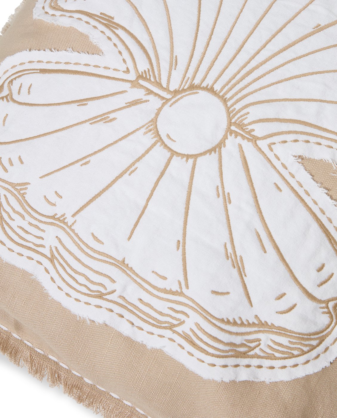 Verleihen Sie Ihrem Zuhause entspanntes, sonnendurchflutetes Flair mit dieser dekorativen Kissenhülle aus einem soften Leinen-Baumwoll-Mix. Der kunstvoll bestickte Patch und die schweren Ziernähte mit Fransenkante erzeugen eine lebendige Struktur und eine handwerkliche Optik, während der verdeckte, farblich abgestimmte Reißverschluss ein sauberes, unkompliziertes Finish gewährleistet. Wählen Sie aus frischen Saisonfarbvarianten, um Sofa, Sessel oder Bett im Handumdrehen aufzufrischen.