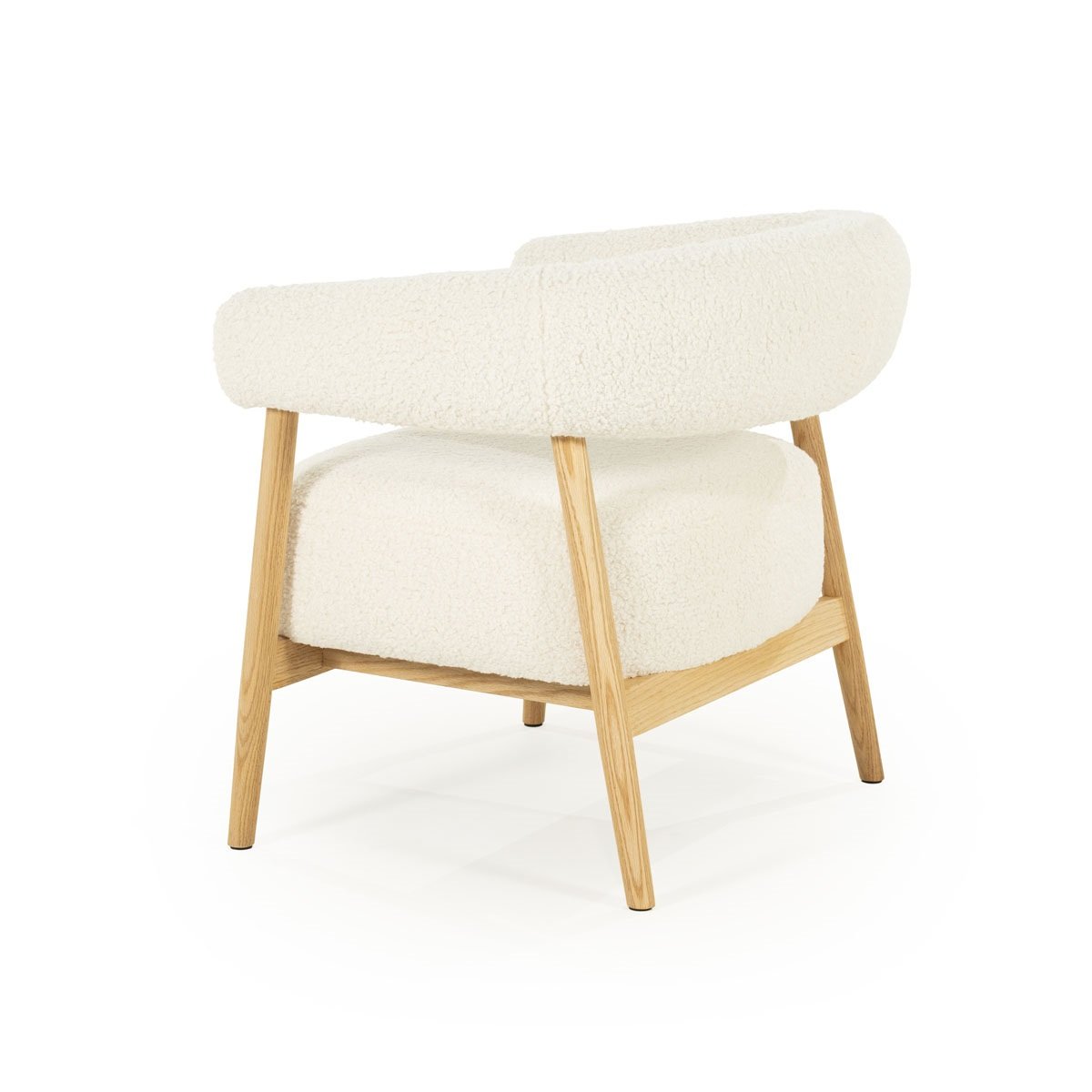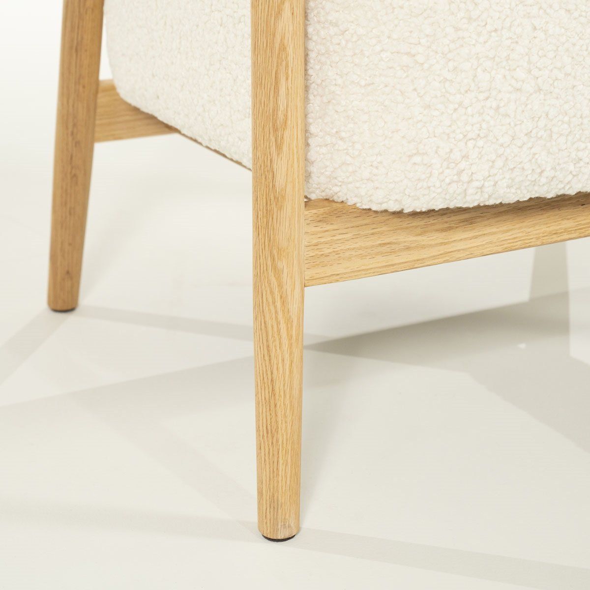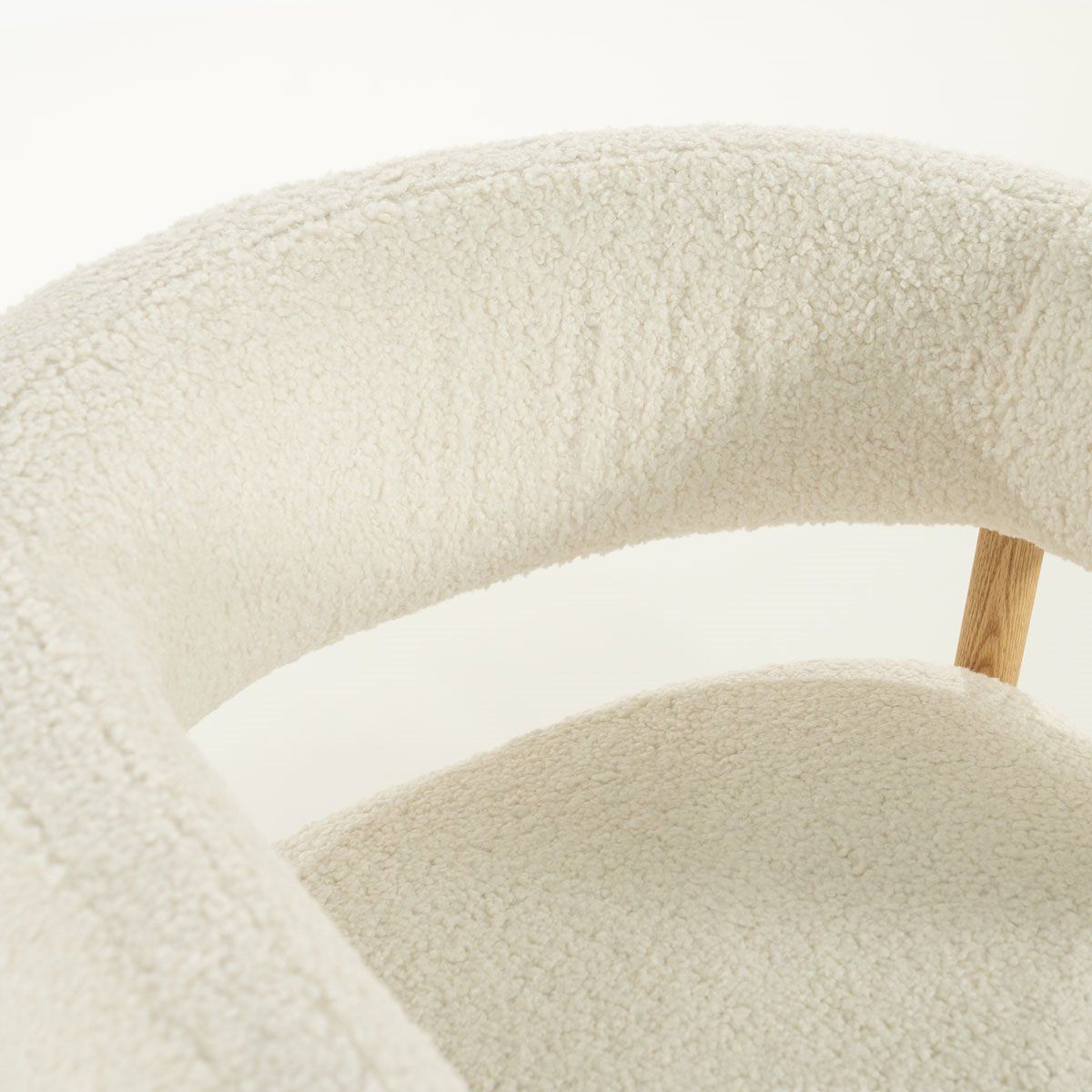 Sessel Mysa ist die ideale Verbindung von natürlichem Charme, Komfort und modernem Design. Die weiche Sitzfläche und Rückenlehne, gepolstert mit einem gemütlichen Boucle-Stoff, kombiniert mit einem eleganten Eichenfuß, schaffen ein Möbelstück, das Wärme und Harmonie in Ihr Zuhause bringt. Die abgerundeten Linien verleihen dem Sessel Leichtigkeit, während die solide Konstruktion Stabilität und Langlebigkeit über Jahre hinweg gewährleistet.