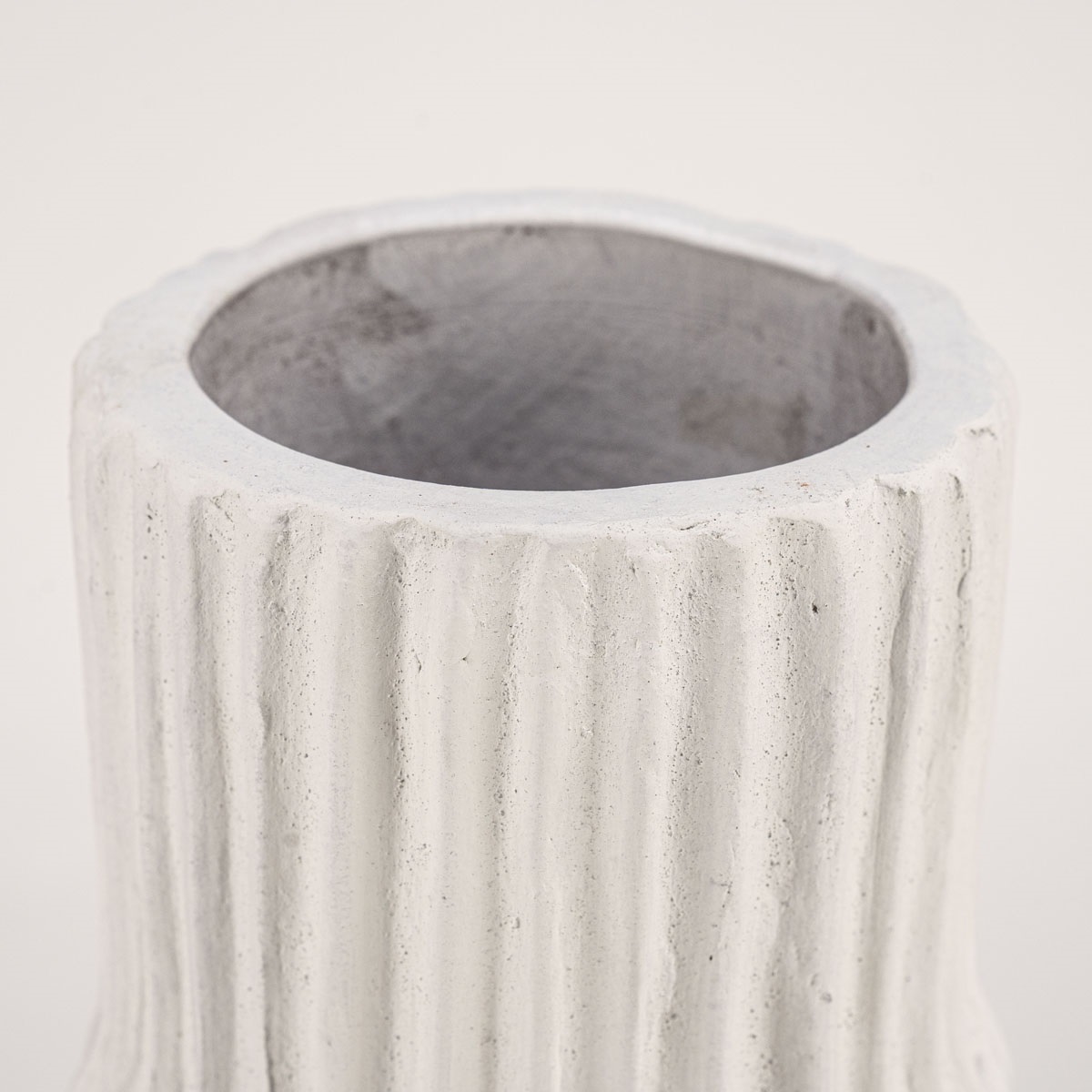Gefertigt aus natürlichem Terrakotta mit mattweißer Oberfläche, passt sie mühelos zu modernen wie auch zu rustikalen Einrichtungsstilen. Sie eignet sich perfekt als Solitärvase oder in Kombination mit Trockenblumen oder künstlichen Zweigen.