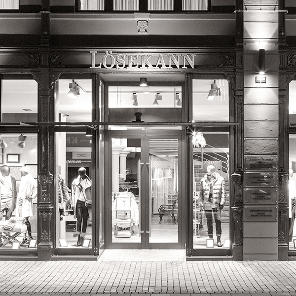 Lösekann steht seit über 50 Jahren für klassische Mode und modernen Luxus. Das Traditionshaus ist ein Treffpunkt für Menschen mit dem Gespür und der Leidenschaft für aktuelle Trends. Der spannungsreiche Kontrast zwischen Tradition und Moderne findet sich im Einrichtungskonzept wieder.