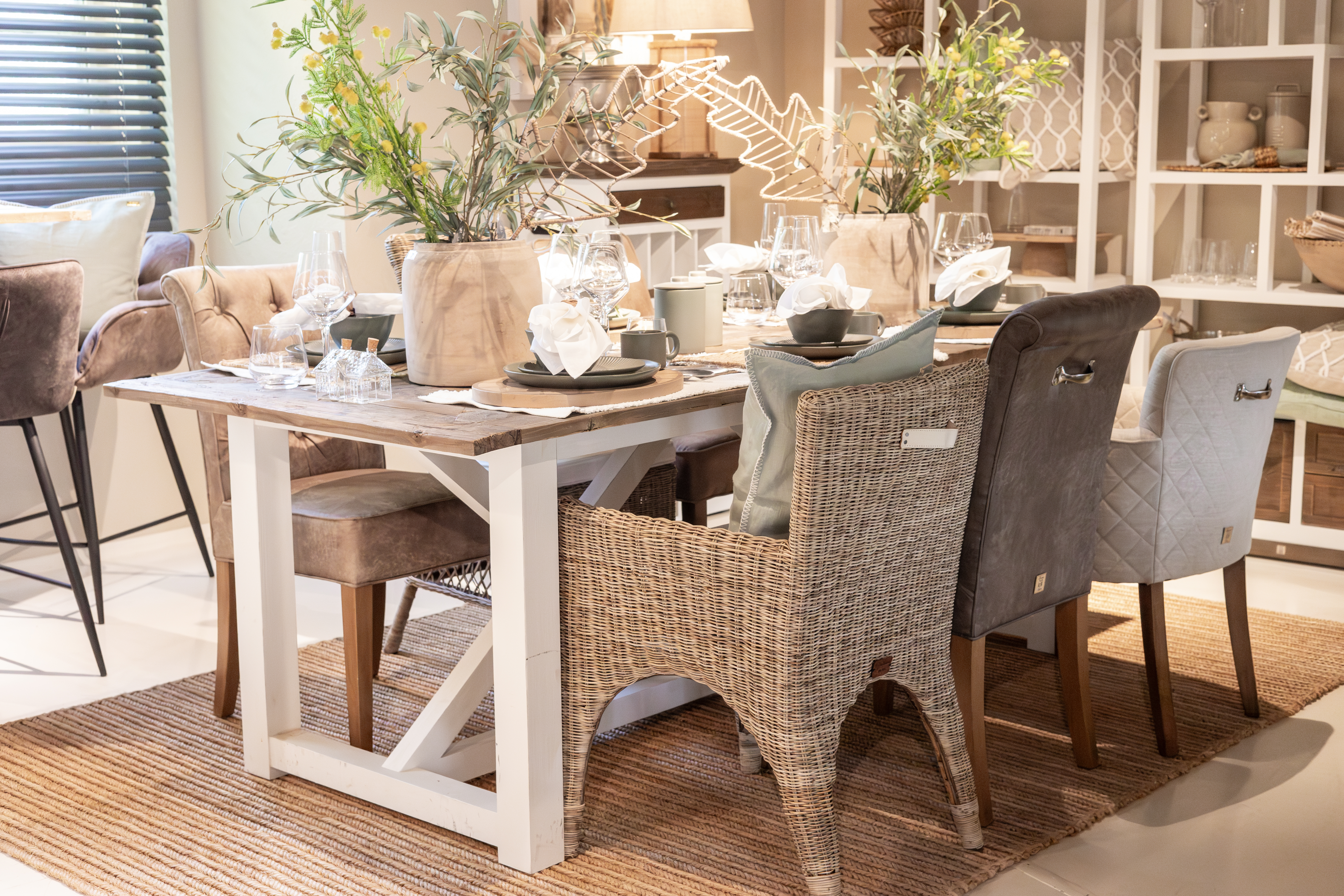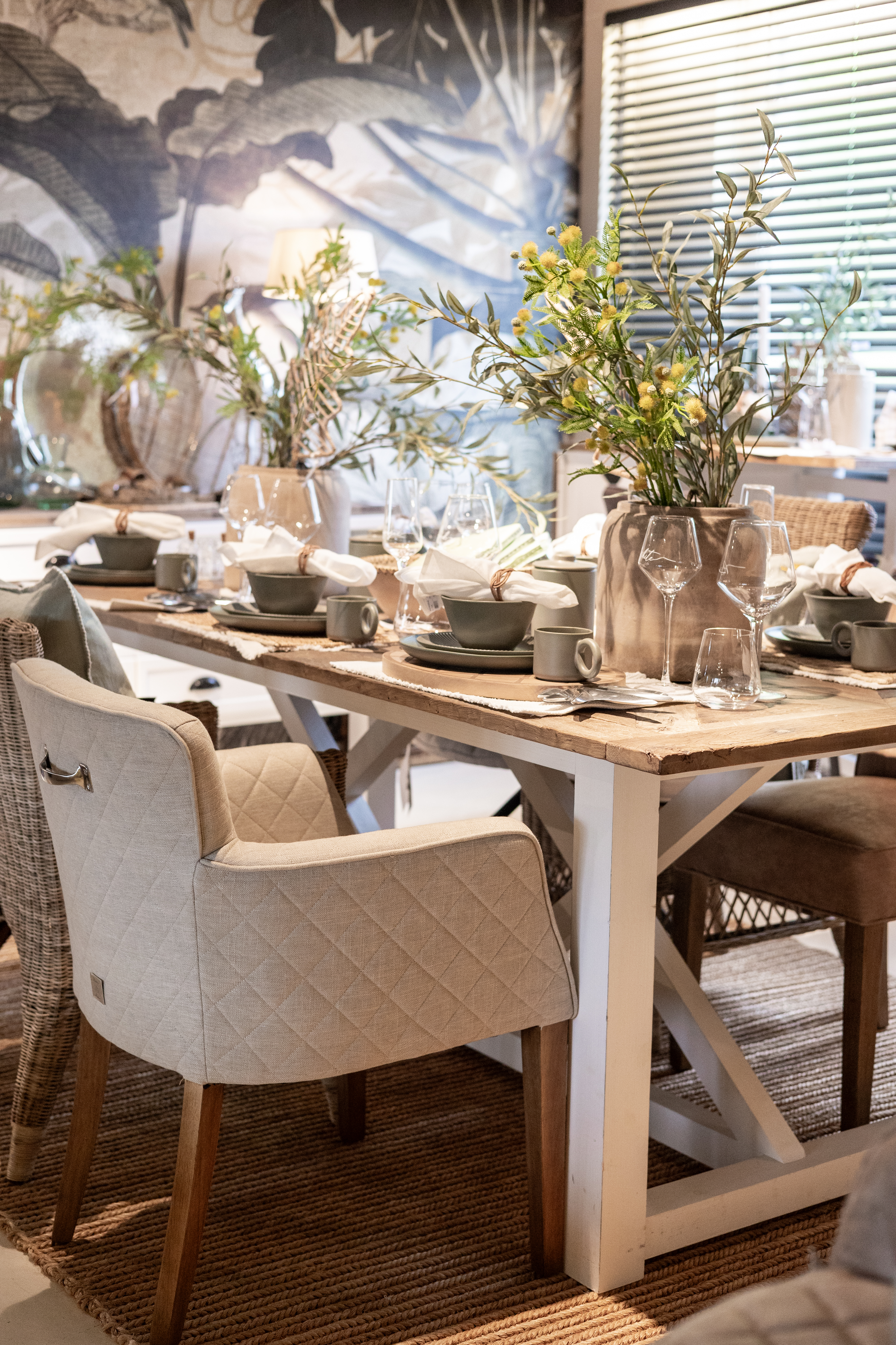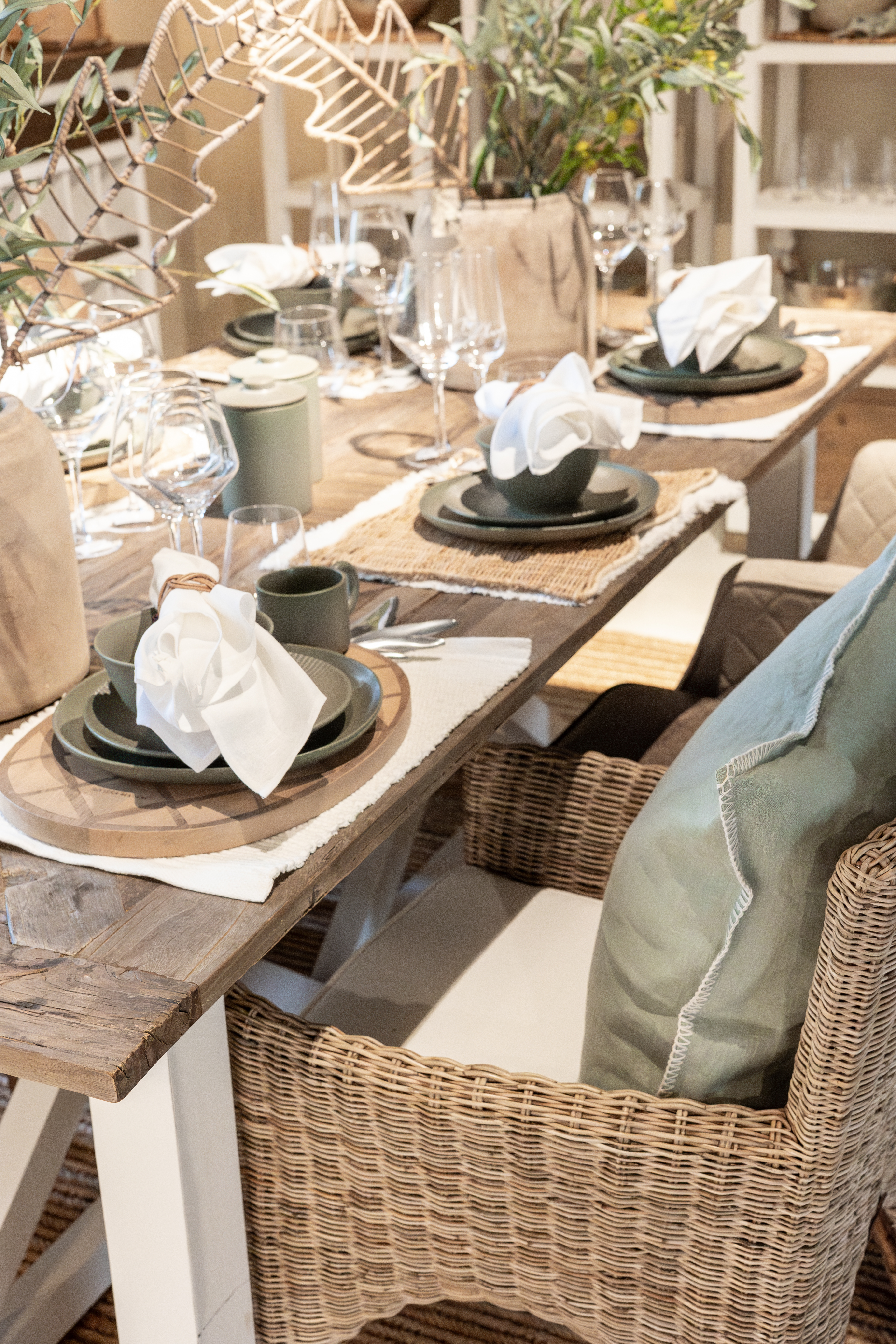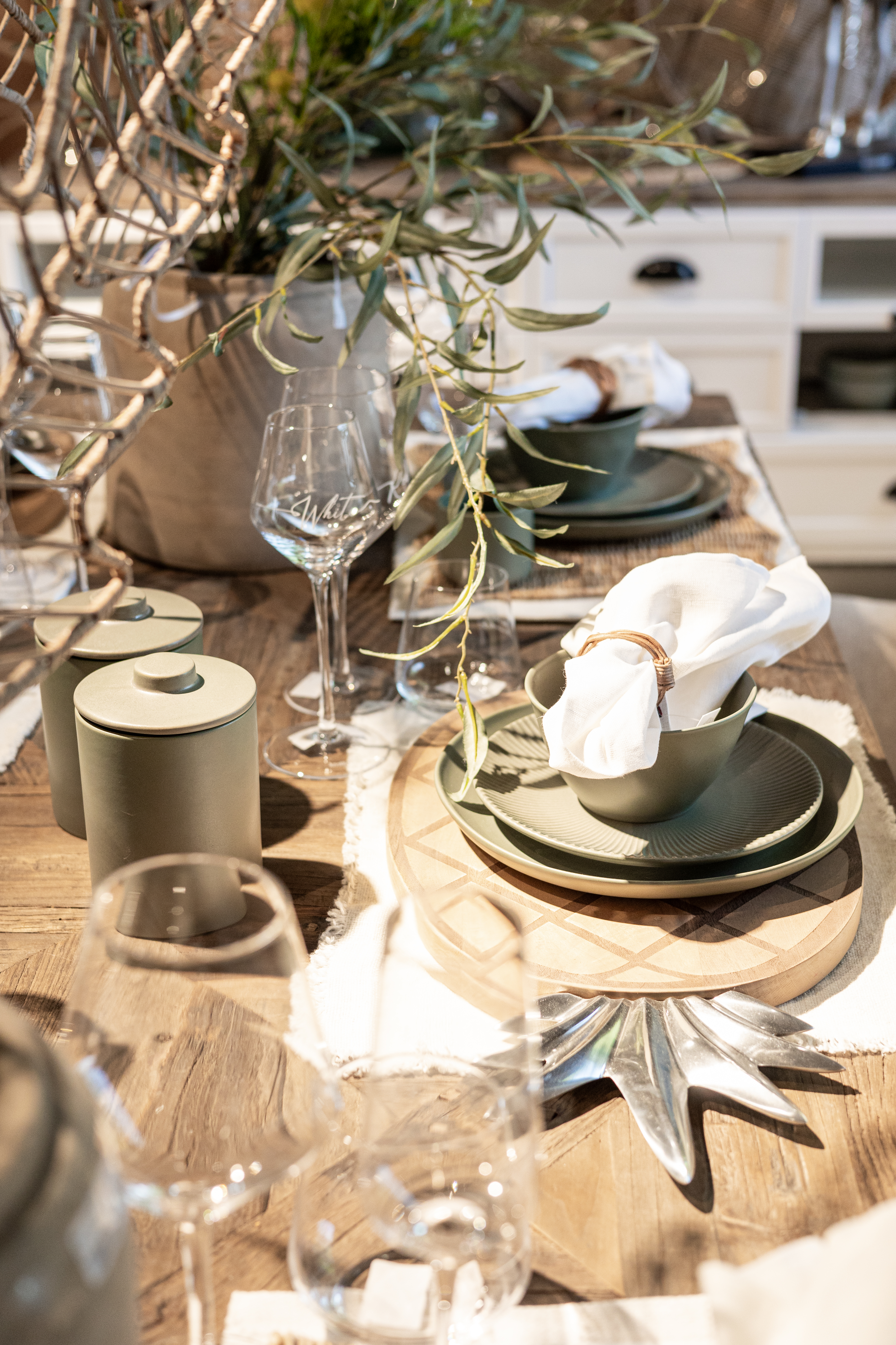Sandige und erdige Töne treffen auf warmes Grün und natürliche Materialien!