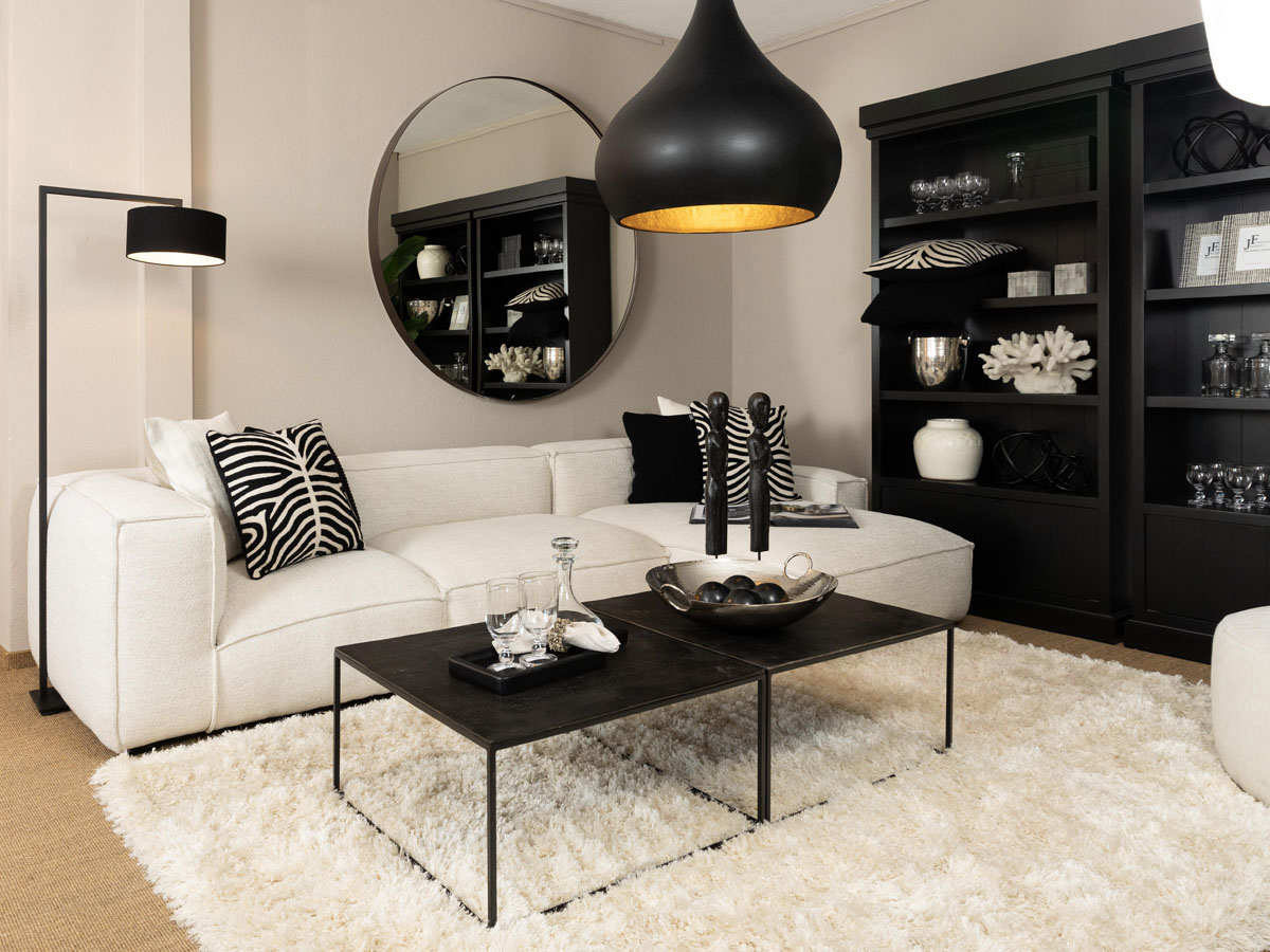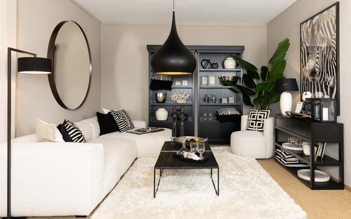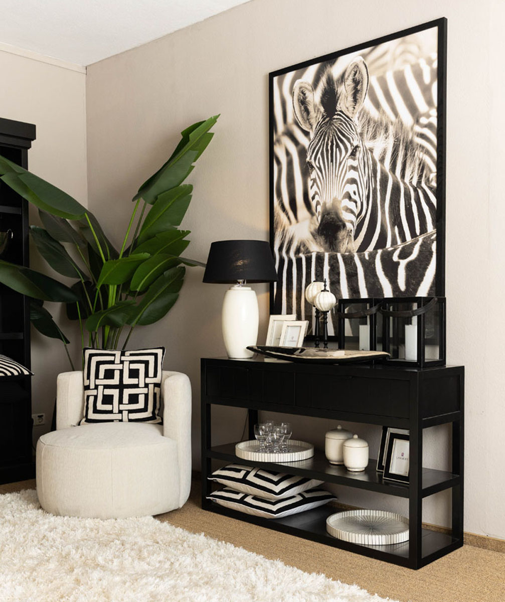 Eine klassische Farbwahl aus Schwarz und Weiß erhält durch gewählte, wiederkehrende Details, einen strukturierten und abgestimmten Look. So wirkt Ihre Einrichtung schon auf den ersten Blick stimmig und schafft ein eindrucksvolles Ambiente.