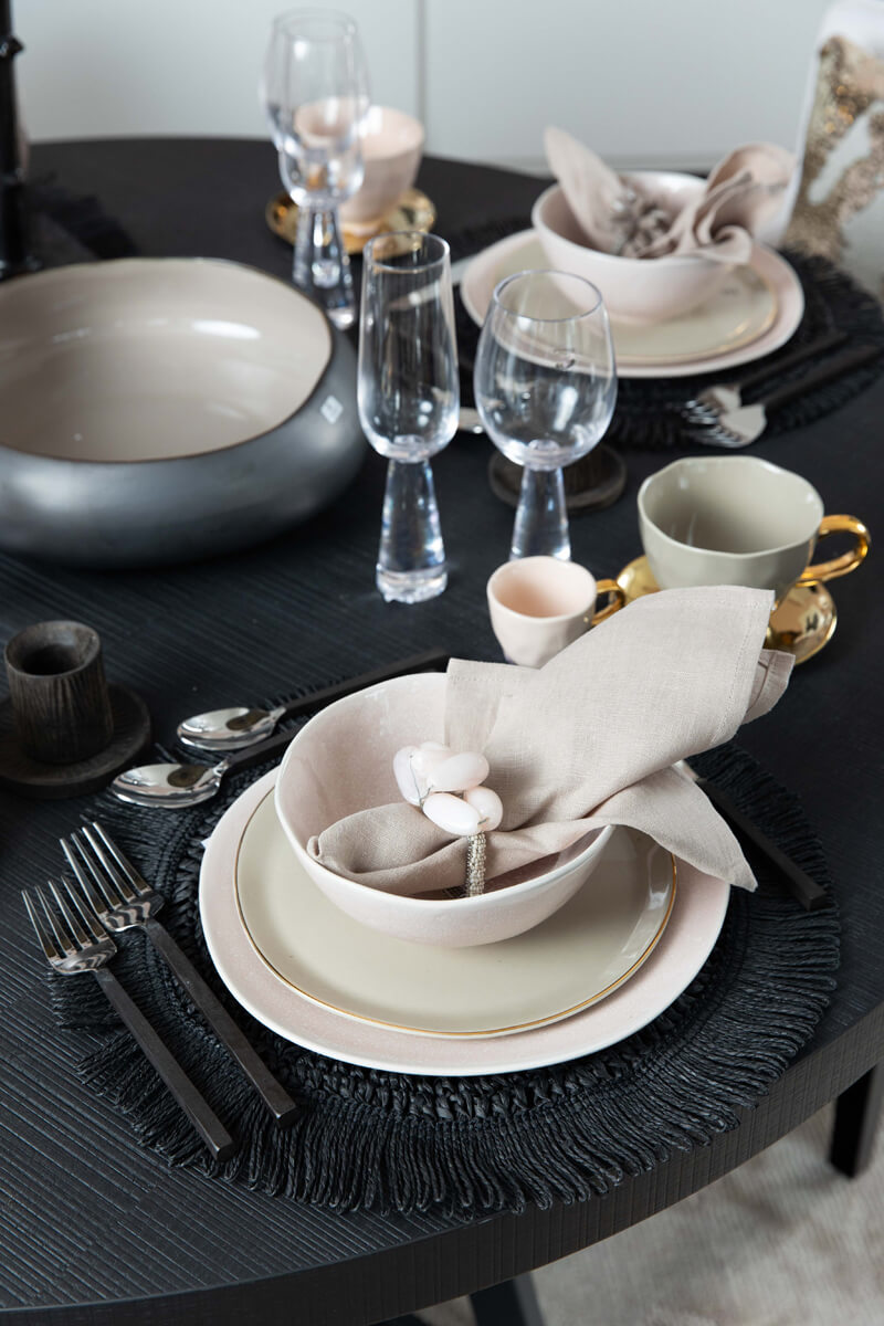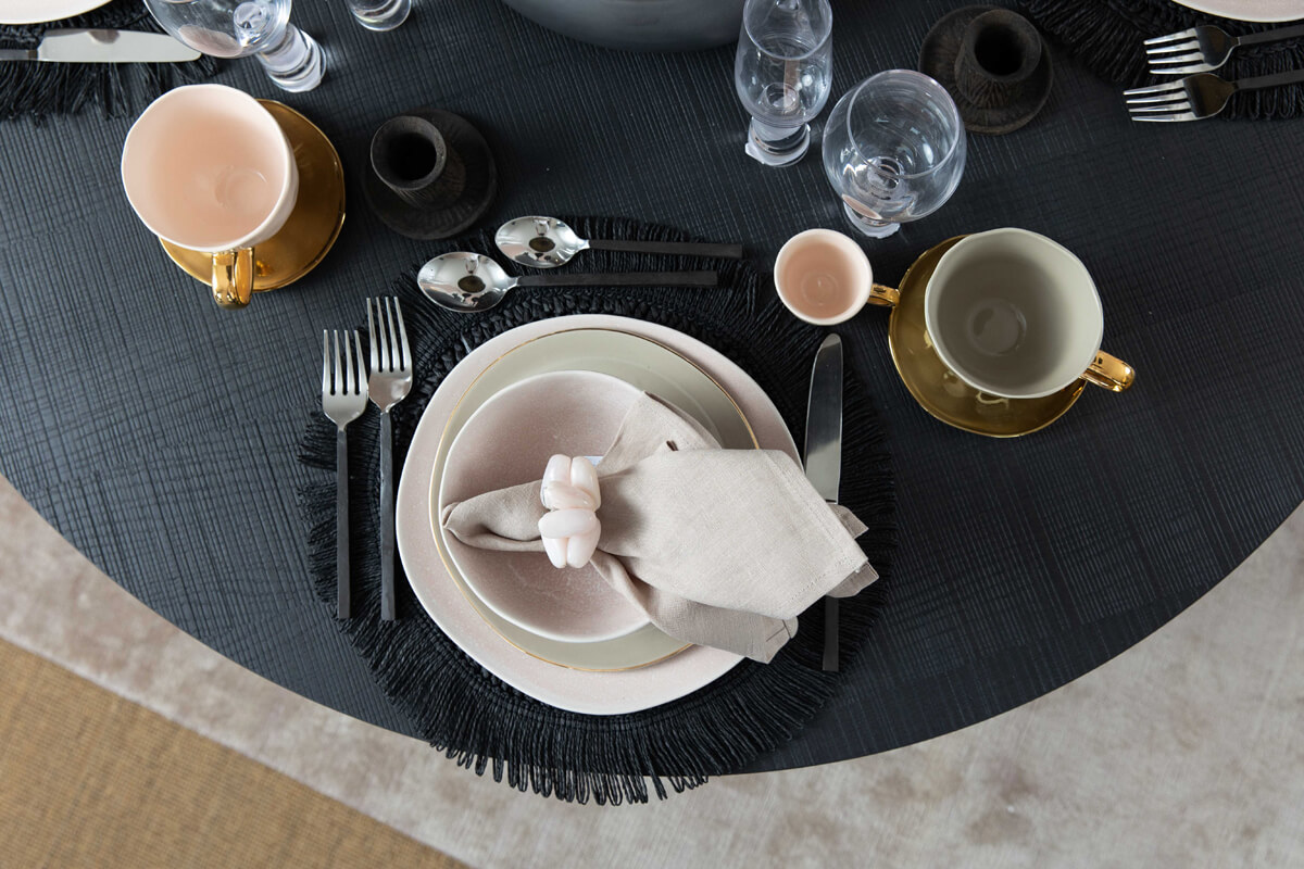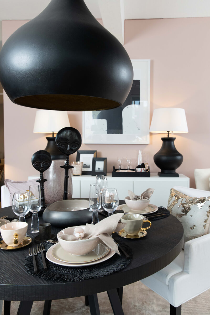 Die stilvolle Konsole von PH Collection verleiht Ihrem Essbereich einen Hauch von Modernität und schafft gleichzeitig genügend Stauraum für viele schöne Dinge. Ergänzen Sie Ihr Interieur mit dem exquisiten Geschirr von Urban Nature Culture, das jedem Mahl eine elegante Note verleiht. Um eine entspannte und gemütliche Atmosphäre zu schaffen, setzen Sie auf die einzigartigen Düfte der Baobab Duftkerzen. Unser runder Esstisch in elegantem Schwarz bildet das Herzstück dieses Wohnkonzepts. Mit seiner zeitlosen Ästhetik und seiner funktionalen Gestaltung ist er der perfekte Ort für gesellige Zusammenkünfte und festliche Anlässe.